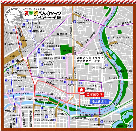 浪速文化支援倶楽部免費提供大阪天神祭的遊行地圖