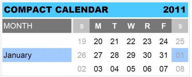 Compact Calendar 2011